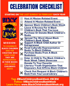 Join us in celebrating Black Children’s Book Week February 23-March 1, 2025! Virtually and face-to-face join us in sharing books that highlight black characters or black antagonists for all readers. As with any events we host, we focus on FUN and Literacy through S.T.E.A.M.! We discuss our self -care action plans and support and uplift one another! When you join us this week, use the Black Children’s Book Week Checklist to check off ways you decide to celebrate! We look forward to you sharing your experiences with us!